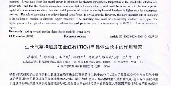Study on Effect of Growth Atmosphere and Rate on Preparation of Rutile Single Crystal